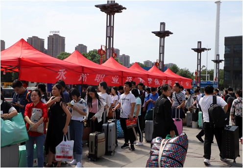 除了校内迎新点,我院在校外的永州火车站、永州汽车北站以及零陵汽车站都设置有迎新点,带队老师和学院青年志愿者们日夜守候,随时为新生提供周到服务。