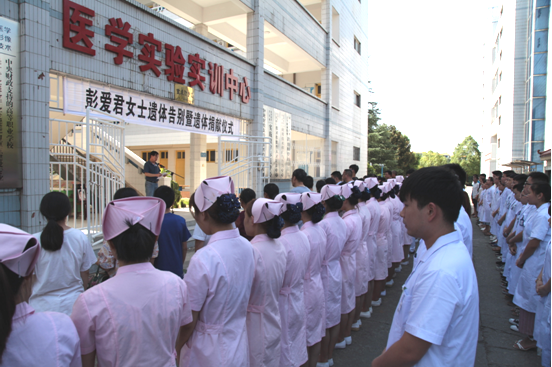 7月26日下午3时,永州市首例遗体捐献仪式在我院医学部解剖实验楼前举行。学院院长助理唐陶富主持捐献仪式,市红十字会副会长伍友华,学院党委委员、宣传统战部部长裴有为出席仪式并讲话。教务处、武装保卫部等相关部门负责人参加了捐献仪式。