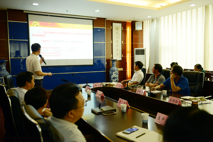 学院党委副书记李国春作了题为《深刻领会新思想,奋力走好新征程——深入学习贯彻习近平新时代中国特色社会主义思想》的辅导报告,他从新思想的时代背景和实践基础、新思想的主题和核心要义、新思想的丰富内涵和历史贡献三个方面对新思想进行了深入的分析和讲解,提出了要在新的指导思想指引下踏上新征程,要深入理解党的初心和历史使命,要明确新的宏伟目标,全面从严治党永远在路上。