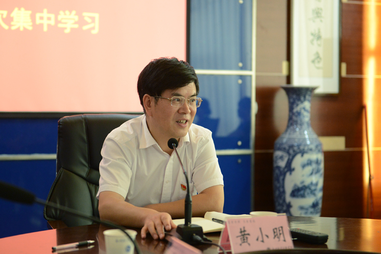 7月4日,学院党委理论学习中心组(扩大)举行第六次集中学习,深入学习习近平新时代中国特色社会主义思想。学院党委书记黄小明主持并讲话,在家的院领导、各党支部书记参加集中学习。