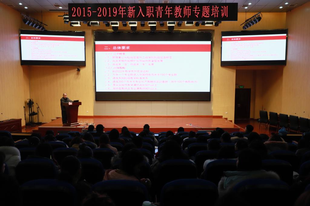 2月22日,学院教务处、组织人事部、教学督导高职研究室、科技产业处、团委等部门联合举办的“2015-2019年新入职青年教师专题培训”在院本部图书馆三楼学术报告厅举行,相关部门领导和参培教师160余人参加了培训。