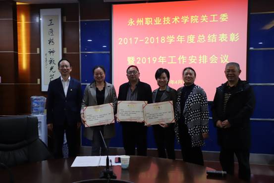 然后,关工委秘书长周瑜宣读了关于表彰关工委工作先进集体和主题教育活动优秀集体的通知,并举行了颁奖仪式,院党委副书记李国春、院关工委常务副主任冯惠先、院关工委副主任朱仁华为获奖集体进行了颁奖。临床医学系、护理系、机械工程系、汽车技术系4个二级关工委被授予“关工委工作先进集体奖”,财经系、计算机系、旅游管理系3个二级关工委被授予“主题教育活动优秀集体”。