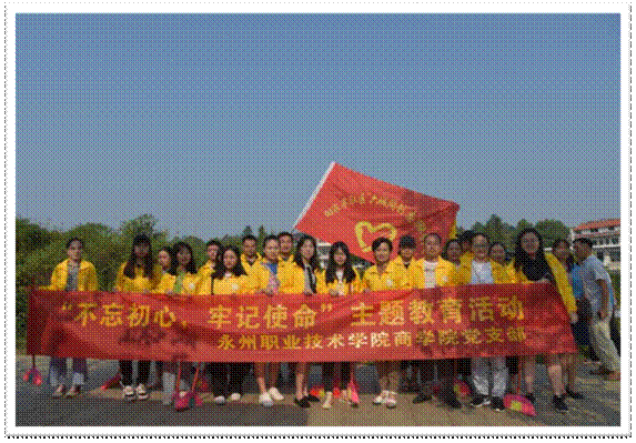 9月20日上午,商学院党支部组织教师党员、学生党员,学生预备党员和入党积极分子联合向家亭社区“六城同创”志愿者服务队开展“不忘初心,牢记使命”主题教育活动。