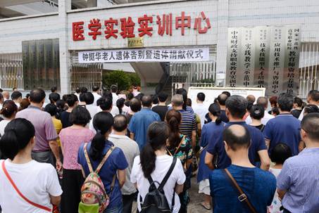 8月21日上午,归国华侨、“中国好人”、离休干部钟挺华老先生遗体捐赠仪式在永州职业技术学院医学实验实训中心举行,来自各行各业的200余名群众自发前来为其送行。永州职院党委副书记李国春出席捐赠仪式并讲话。