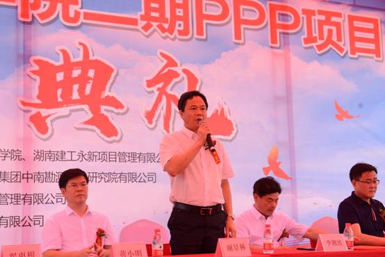 校党委书记黄小明代表学校向一直以来关心和支持我校发展的市委、市政府,零陵区及相关部门的各级领导表示诚挚的敬意。向齐心协力推进校本部二期PPP项目建设的全体工作者致以衷心的感谢。