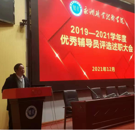 为给广大辅导员搭建一个交流、学习的平台,促进我校辅导员管理工作更加科学有效,12月31日,我校成功举办了2019-2021学年度优秀辅导员评选述职大会。校党委委员、副校长杨铭,学工部部长邓如涛,武装保卫部部长蔡民,团委书记张宜剑,组织人事部副部长张航航,学工部副部长黄营满,学工部副部长汤锦军出席大会并担任评委,各学院党支部书记、副书记、学工办主任、专职辅导员及学工部工作人员共计120余人参加了此次大会。