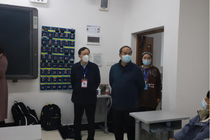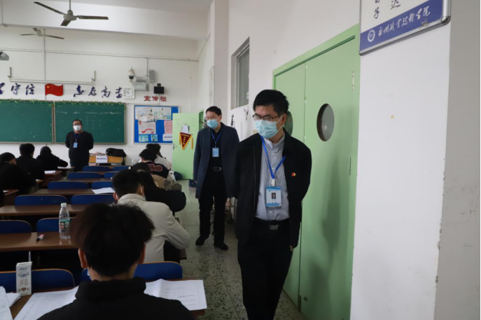 党委副书记、校长翟惠根,市教育局副局长刘安球巡视考场