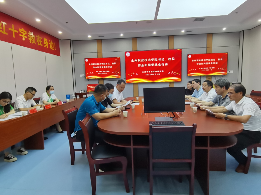 为贯彻落实党中央、国务院关于高校毕业生就业工作的决策部署,按照教育部、省教育厅“书记校长访企拓岗促就业专项行动”的工作要求,帮助毕业生高质量充分就业,6月1号永州职业技术学院党委委员、副校长韩立路带领教务处、就业处、学工部、实习农场等部门负责人走访调研相关企业,主动搭建校企合作桥梁,为学生开拓更多就业岗位。韩立路一行先后走访了湖南太一科技有限公司、永州元硕电子有限公司、永州市永靛中药饮片股份有限公司、湖南福达康医疗科技有限公司、湖南赛菱体育用品有限公司共5家企业和零陵区妇幼保健院、永州市中医医院2家医院。