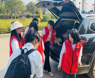 党员教师搬运行李