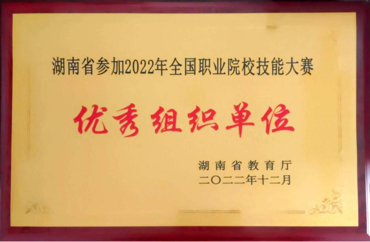 3月2日,湖南省教育厅隆重举行2023年度“楚怡杯”湖南省职业院校技能竞赛总开幕式,永州职业技术学院荣获湖南省参加2022年全国职业院校技能大赛“优秀组织单位”荣誉称号;罗辉、崔亚飞两位老师获“优秀指导教师”荣誉称号;唐洲、廖程杨、傅远杨三名同学获“优秀选手”荣誉称号。