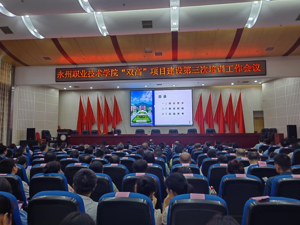 本次培训工作是根据学校“双高”项目建设方案和年度工作部署,是学校提交省级中期绩效评价材料后,为统一思想,加强协调,集思广益、重点攻坚,强化责任、全力推进“双高”项目后续建设工作的全员培训会,为高质量完成2024年度绩效目标任务和“双高”后续建设任务提供智力保障。
