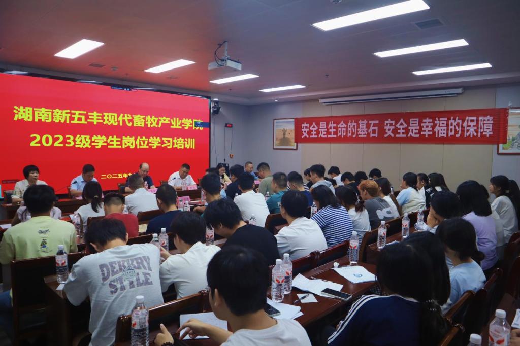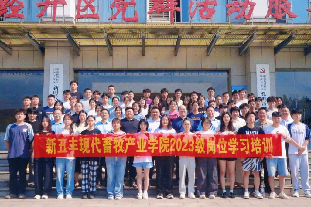 9 月 2 日,新五丰现代畜牧产业学院 2023 级学生岗位学习培训在湖南新五丰股份有限公司衡阳分公司启动。我校党委委员、副校长陈强及教务处、农学院负责人,湖南新五丰股份有限公司党委委员、养殖事业部总经理唐威出席启动仪式,2023 级 65 名学生参加,为即将开启的跟岗学习筑牢前期基础。