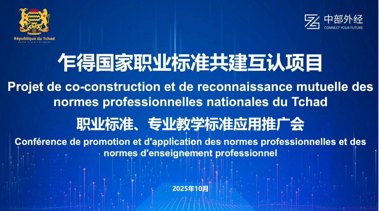 2025年10月30日北京时间16点,乍得时间9点“乍得国家职业标准共建互认项目”职业标准、专业教学标准应用推广会议首日顺利召开。本次推广会由中部外经集团承办,乍得教育主管部门领导、乍得高等教育、科研及职业培训部副部长姆拜罗·托格纳耶·拉玛吉女士、专家及教师代表联合中国多所职业院校共同参与,旨在推动中乍共建标准在乍得职业院校的落地应用。
