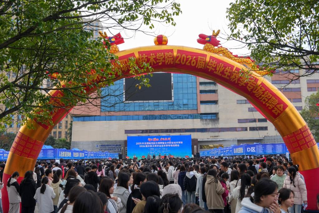 11月5日上午,由永州职业技术学院和永州市人力资源与社会保障局共同举办的永州市2025年大中城市联合招聘暨永州职业技术学院2026届非医卫类毕业生专场招聘会在永州职业技术学院图书馆广场举行。