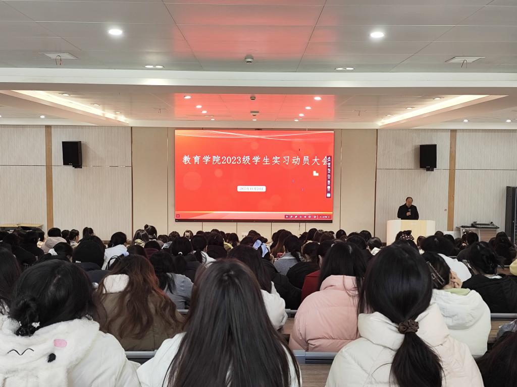 为扎实推进2023级学生岗位实习工作,助力学生明确实习目标、转变实习就业心态、提升职业竞争力,11月28日下午,教育学院在综合教学楼A200阶梯教室举行2023级学生岗位实习动员大会,教育学院主要负责人、各毕业班级辅导员及2023级全体学生参会。