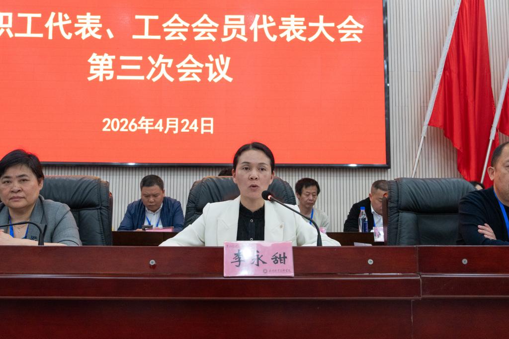 4月24日,永州职业技术学院在校本部召开第五届教职工代表、工会会员代表大会第三次会议。在家校领导、全体代表、特邀嘉宾、列席代表齐聚一堂,共商学校发展大计。会议由党委副书记李勇主持,市总工会党组副书记、副主席李永甜应邀出席并讲话。