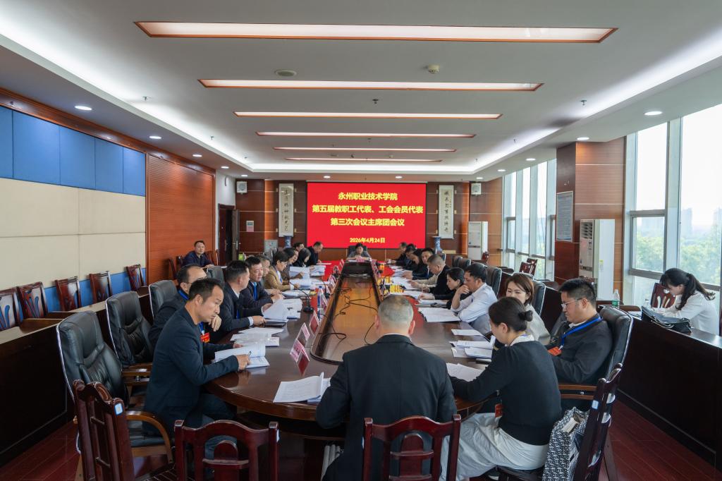 大会采取举手表决的方式,审议通过了《永州职业技术学院第五届教职工代表、工会会员代表大会第三次会议关于学校工作报告的决议》、《永州职业技术学院第五届教职工代表、工会会员代表大会第三次会议关于学校工会工作报告的决议》、《永州职业技术学院第五届教职工代表、工会会员代表大会第三次会议关于学校2025-2026年财务预决算报告的决议》以及《永州职业技术学院关于适当调整在职工会会员相关福利待遇标准的实施办法》和《永州职业技术学院职称评审相关实施办法》。