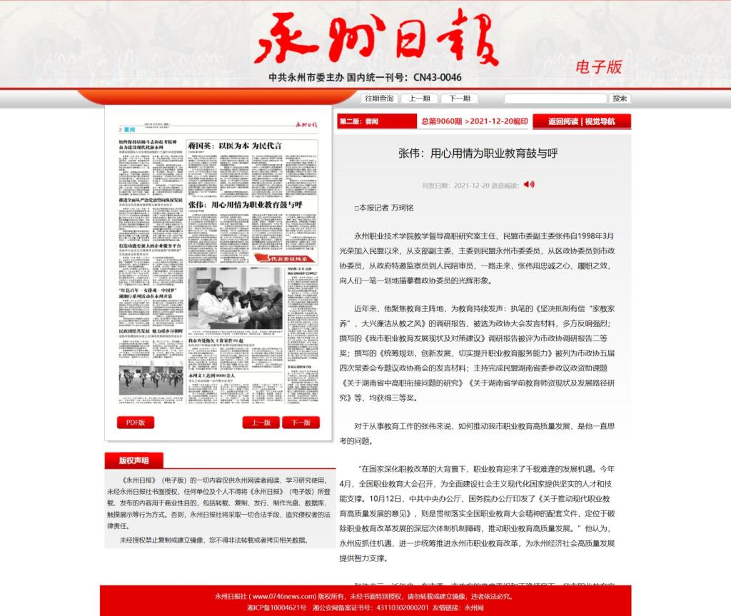 “一定要充分认识职业教育对当地经济社会发展的重要性,推动职业教育发展的每一步都意义重大。”张伟表示,今后将一如既往,切实发挥委员作用,以推动职业教育发展为己任,为永州职业教育履职尽责、贡献力量。