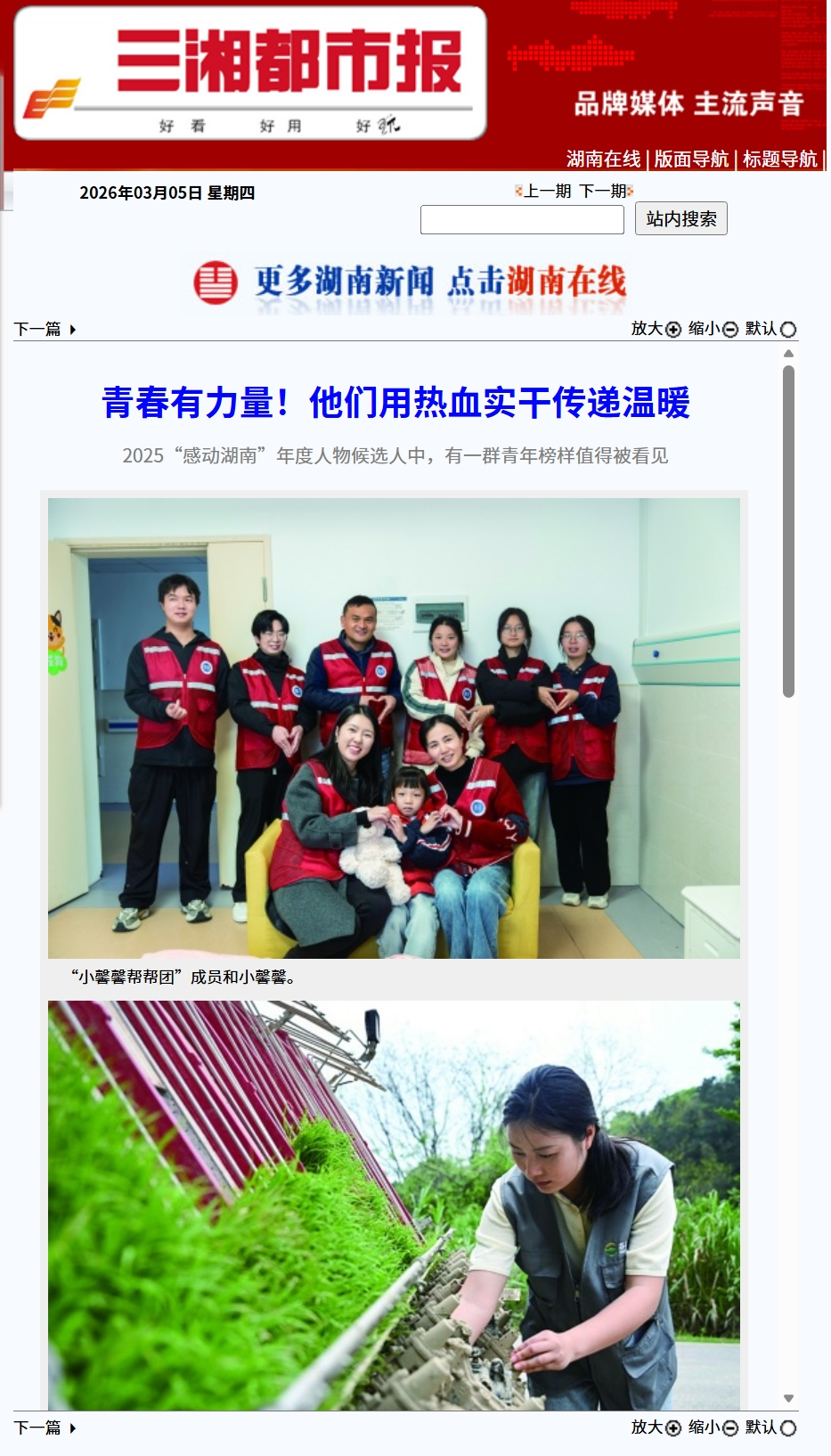 “我在这群‘00后’孩子身上,看到的是满满的社会责任感,他们在关键时刻总能挺身而出。”唐新宇表示,成为2025“感动湖南”年度人物评选候选人,“小馨馨帮帮团”的每一分子都很惊喜,希望同学们纯粹的善意和坚定的行动,让青春的温暖力量感染更多人。