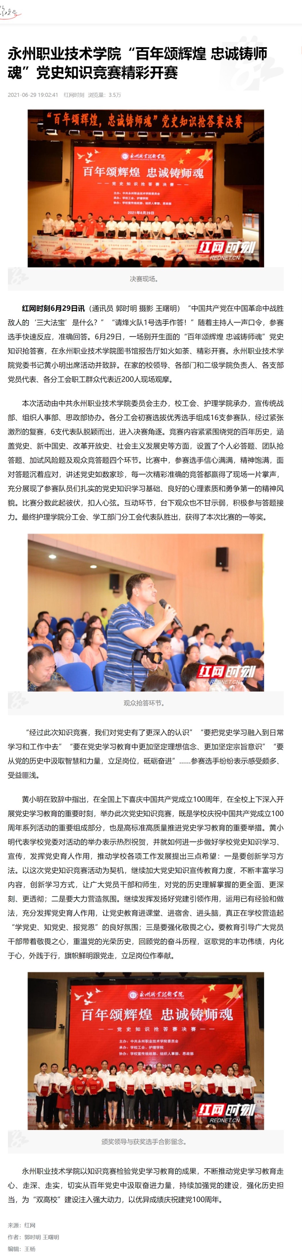 【红网】永州职业技术学院“百年颂辉煌 忠诚铸师魂”党史知识竞赛精彩开赛