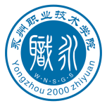 第八十八条 学院校徽是双圆套圆形徽标,内圆背景为蓝色,图案由“永州职业技术学院”简称“永职”二字的篆体字构成,寓学院根植于永州深厚的历史文化之中。图案下方依次排列的“W.N.S.G.S”是“卫校、农校、商校、工校、师范”五校汉语拼音第一个汉字的声母,寓五校合并,相互融合,形成一个整体。图案上方为隶书“永州职业技术学院”全称,下方两侧为永州职院的汉语拼音,下方正中为“2000”字样,代表学院建校成立纪念年。