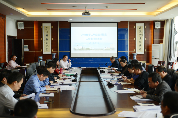 4月10日上午,学院在办公楼三楼会议室召开迎全省2018年高职学生毕业设计抽查专题会议,学院党委委员、副院长韩立路出席会议,教务处、学工部、图书馆、纪委监察等部门负责人及系部主任、教学副主任、教学秘书参加了会议。
