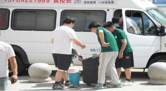 我们的志愿者同学们顶着烈日,提前在车站等候新同学们的到来,车一到站就细心的帮助新同学们提行李,引导他们去报到处报到。
