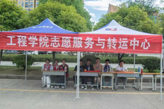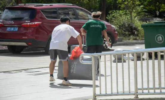 我们的志愿者同学们在校门口布置了接待区,来报到的同学可以把行李暂放在此处,如果有需要帮助的同学也可以向志愿者寻求帮助。