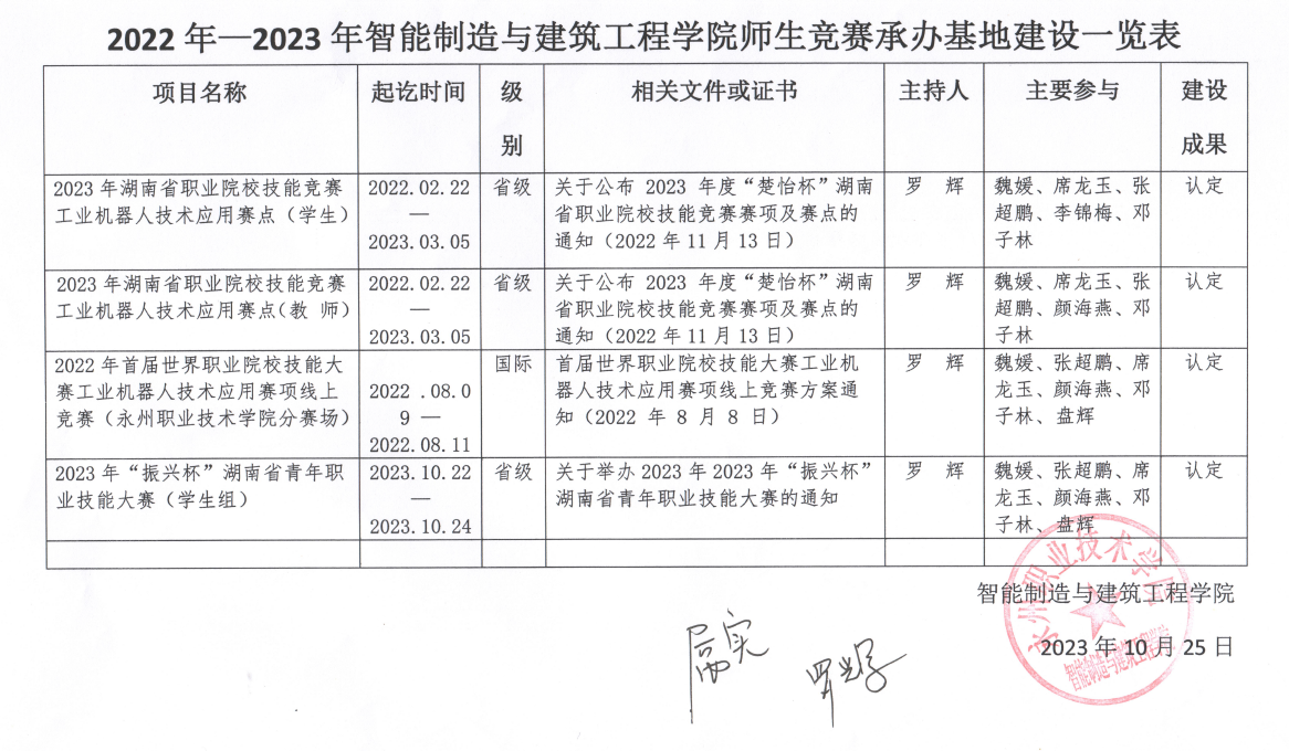 经智能制造与建筑工程学院审核无误,现将以下党建项目及师生竞赛承办基地建设情况进行公示,如有异议,请于2023年11月1日24:00前向学院反映,联系电话:18174601119。