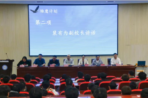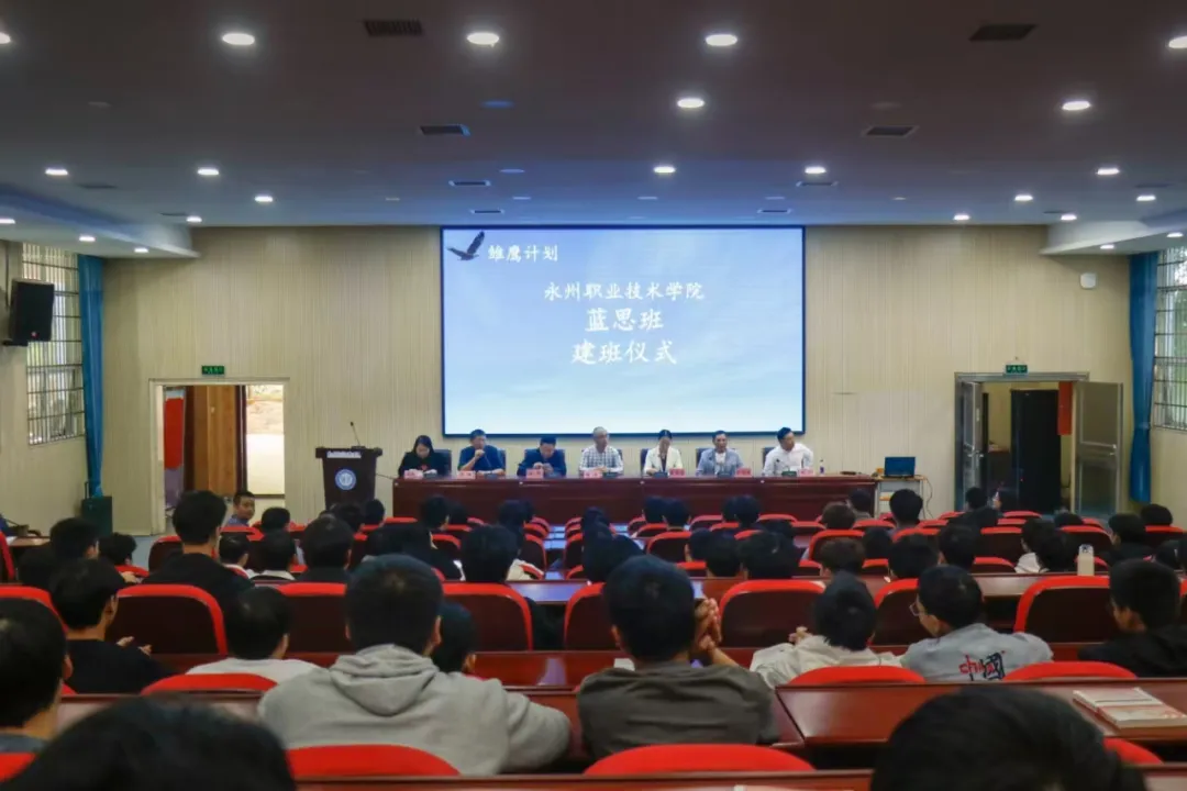 秋风送爽、丹桂飘香, 11月7日下午,永州职业技术学院工程学院在三教101C举行“雏鹰计划蓝思班” 建班仪式。校党委委员、副校长裴有为、教务处处长张伟、工程学院院长罗辉、工程学院党支部书记张超鹏、工程学院副院长邓子林、教务处校企业合作办主任周晓艺,蓝思科技股份有限公司学习发展总监隋明、学习发展经理柳科、学习发展专干王帅出席此次会。
