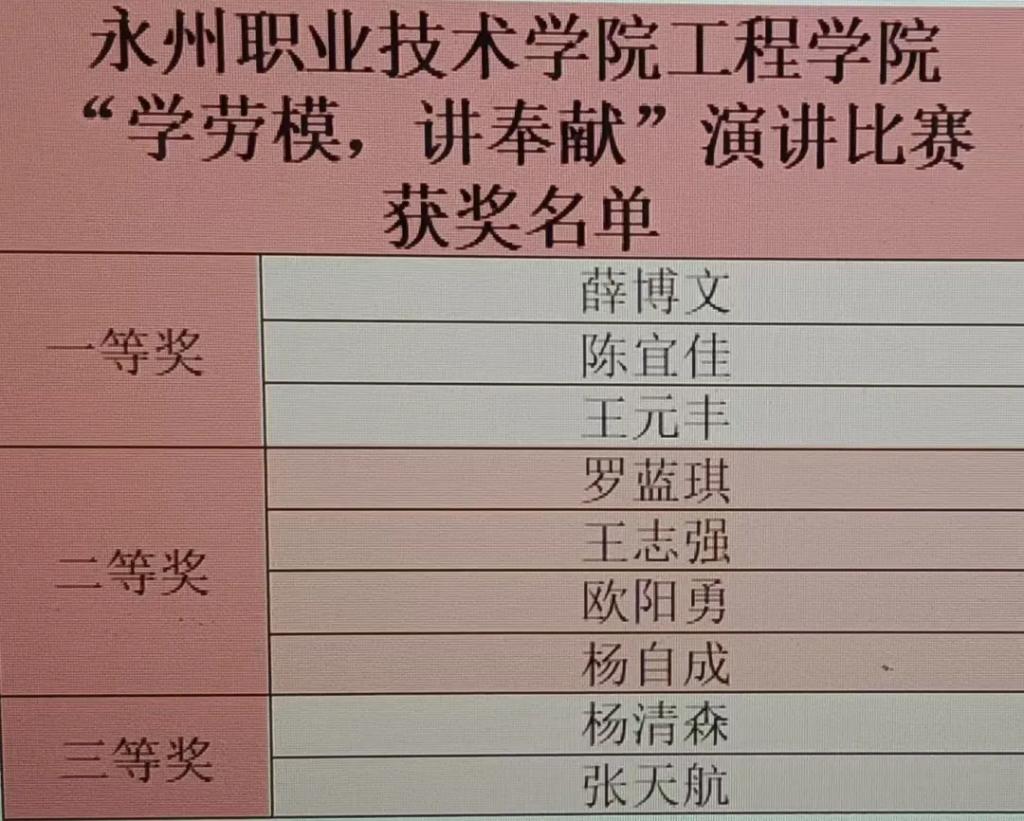 在这个充满正能量的夜晚,永职工程学院三教101c教室被一股无私奉献、爱岗敬业的热情点燃!我们的“学劳模,讲奉献”演讲比赛,不仅是一场语言的盛宴,更是一次心灵的洗礼,圆满落下帷幕!