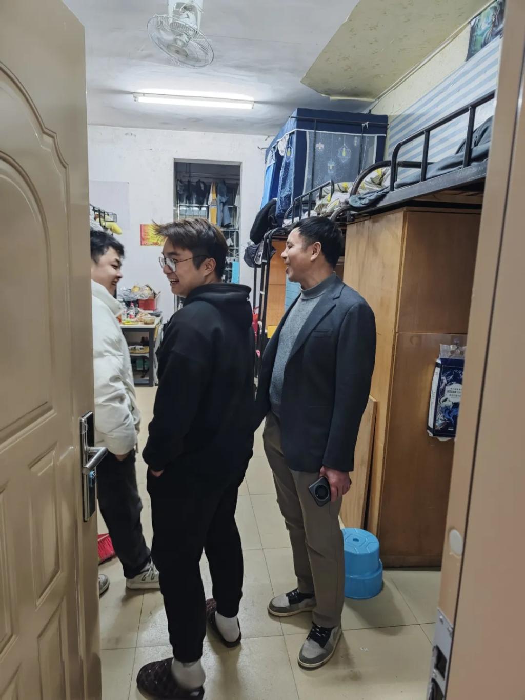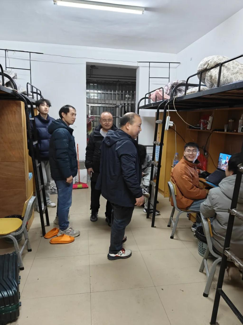 班会结束后,党员教师们马不停蹄,分组前往学生宿舍,实地了解同学们的日常生活情况。从宿舍安全到设施维护,从学习环境到饮食起居,教师们细致询问、认真记录。
