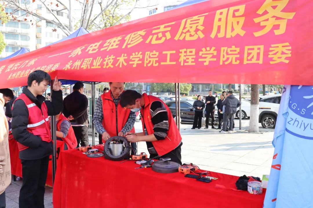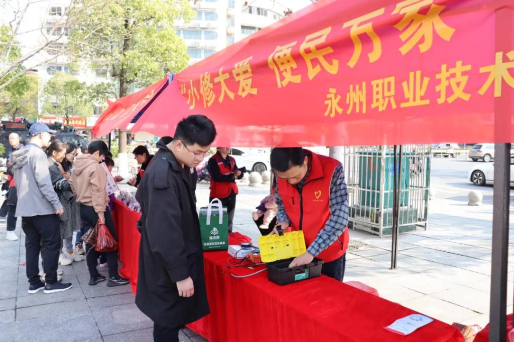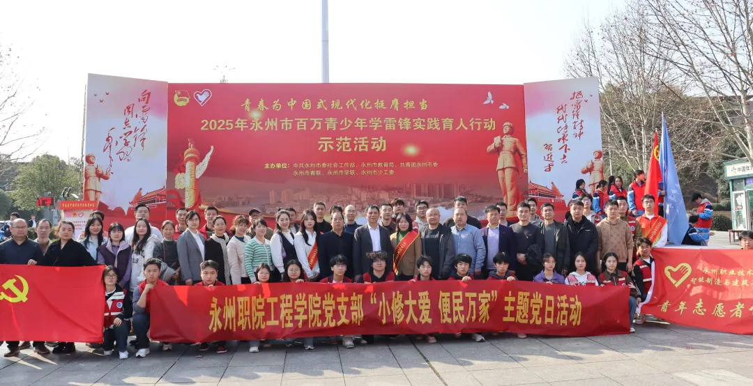 为弘扬雷锋精神,倡导社会文明新风,深化学雷锋活动,践行志愿服务,营造向上向善的良好社会风尚,发挥党员先锋模范作用,永州职业技术学院工程学院党支部于 2025 年 3 月 1 日上午 9:00,在永州市健身主题公园前坪开展了一场别开生面的 “小修大爱 便民万家” 主题党日活动。