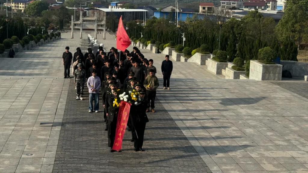 清明时节,哀思悠悠。为铭记历史,传承红色基因,2025 年 4 月 1 日,永州职业技术学院工程学院军事爱好者协会的同学们,在学院科长颜海燕、学工科主任肖丽娟、协会指导老师邓人玮、辅导员王青星老师的带领下,怀着无比崇敬的心情,开展了以 “缅怀革命先烈,传承红色精神” 为主题的清明节祭奠活动。这次活动,同学们用脚步丈量历史,用真心缅怀先烈。
