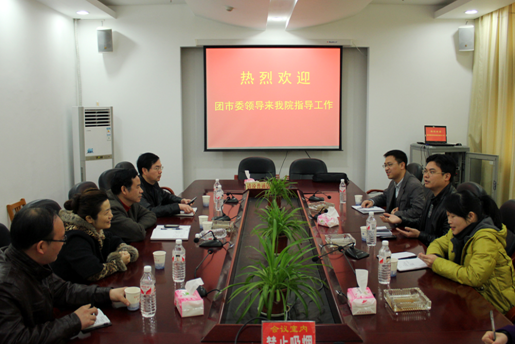 3月22日,团市委副书记陈雄及青少部的负责人等一行三人来我院指导对青年学生开展创业教育情况,学院副院长窦铁生、院长助理唐陶富及院团委全体成员、就业处相关负责人参加了汇报会。 会上,观看了由我院团委和宣传部联合制作的反映我院共青团工作的宣传片。观后,团市委陈雄副书记对我院共青团工作予以高度评价,他说“永州职院对共青团工作认识深、思路新、工作实、方法好,不愧为全市共青团工作的示范,一部宣传片展示了学院共青团工作的全貌、展现了共青团干部的风貌,对学院共青团工作表示钦佩!”随后,院团委和就业处分别就SYB、JYB创业实践教育的开展情况作了介绍,并对创业教育培训基地建设向团市委提出了申请。团市委青少部张超部长详细的了解了学院创业教育的基础设施和师资力量情况,并推介了由共青团组织发起的创业培训教育的要求和条件。经过协商,团市委和我院就创业培训教育的事宜达成了初步的合作意向。