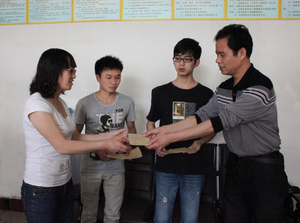 近日,我院雅安籍学生处理完家事后纷纷返校,我院主管学生工作的窦铁生副院长在团委干部的陪同下第一时间到系部看望返校的雅安学子,代表学院对他们进行慰问,并对他们今后的学习和生活作了周到的安排。 雅安发生地震后牵动着我院广大师生的心,在学院党、政主要领导的指示下,院团委对全院雅安籍的学生进行了一次全面的摸排,查实我院雅安籍学生共有三人,医学影像和医学技术系来自雅安天全县的高洪根同学、护理系来自雅安汉源县的董建霞同学、临床系来自雅安芦山的谢帅同学,三人中谢帅家位于震中,房屋全部倒塌,所幸家人未伤亡,其他两人受灾较轻。看望中,窦副院长表示:雅安发生地震,看到灾区群众受灾,人员伤亡,房屋财产受损,我们也很难过,让我们共同为灾区人民祈福。同时,我们坚信,有党中央和国务院的坚强领导和科学统一的部署,有社会各界的大力支持,有灾区人民的团结互助,定会克服困难,取得抗震救灾的胜利和重建美好家园。学院一直关注和关心雅安学子,希望你们正视困难,战胜挫折,坚持求学,以成绩回馈社会和学校的关爱。 谢帅代表雅安的同学表示,灾情发生以后,他们自己非常牵挂灾区情况,担心家人、亲人和朋友的安危,并在学院领导的支持下回家探望了家人,家里虽然房屋倒塌,但幸运的是家中并无人员伤亡。感谢学校领导、老师和同学们的关怀,让我们感到亲人般的温暖。他表示,今后将这份关爱化成动力,努力学习,练就技能,爱心回馈社会和他人。 窦铁生副院长代表学校根据他们的受灾情况发放了助学捐款。