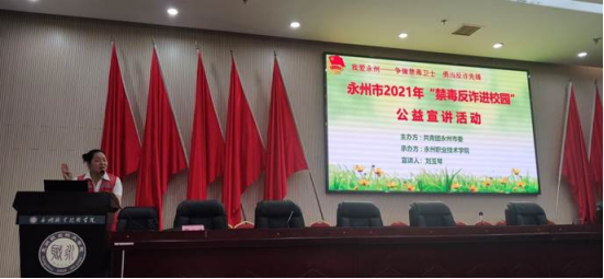 为深入贯彻落实习近平总书记关于禁毒、打击电信网络新型违法犯罪工作重要指示精神和市委市政府关于禁毒反诈工作的安排部署,切实保护好我校学生生命财产安全,提高禁毒防电诈意识,9月8日下午,由团市委主办,我校承办的永州市2021“禁毒反诈进校园”宣讲活动在二楼报告厅举行,学生工作部、武装保卫部、校团委主要负责人,各学院党支部书记及全体2021级新生辅导员、兼职班主任聆听了讲座。