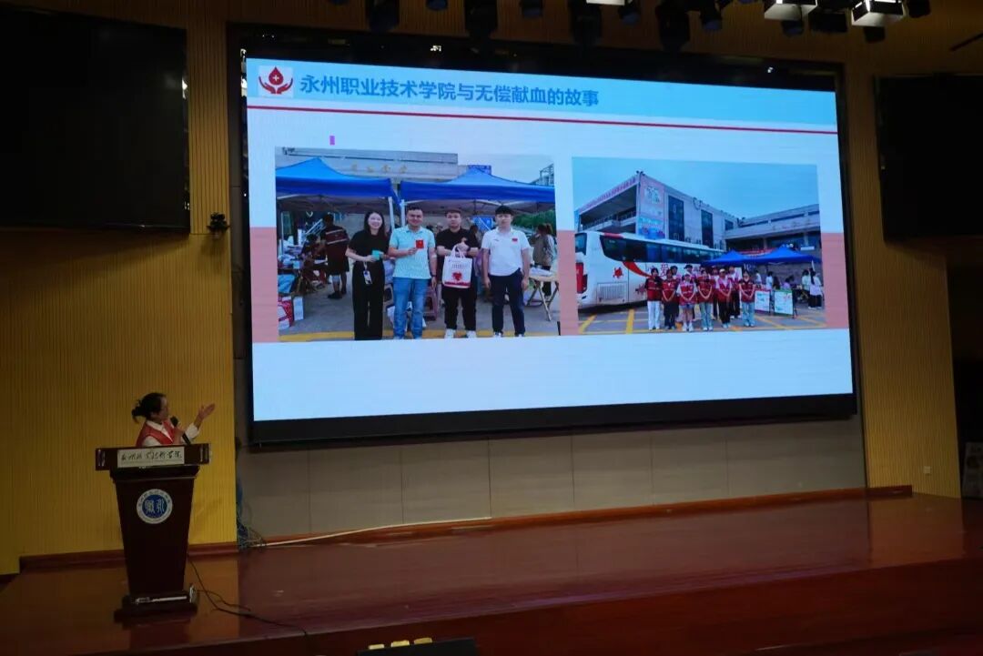 活动第三项,2024年永州市中心血站无偿献血宣讲活动,宣讲员陈洁凭借卓越的专业素养和生动活泼的讲解方式,通过生动的案例和详实的数据,阐述了无偿献血科普知识与无偿献血的重要意义。针对政策法规、献血者待遇、社会热点话题等同学们感兴趣的内容,深入浅出地介绍了无偿献血的科学知识和社会价值,并与学生互动,认真答疑解惑。同学们纷纷表示,通过讲座学到了很多关于血液和献血的知识,深刻认识到了无偿献血的重要性和意义,将积极投身于无偿献血活动。