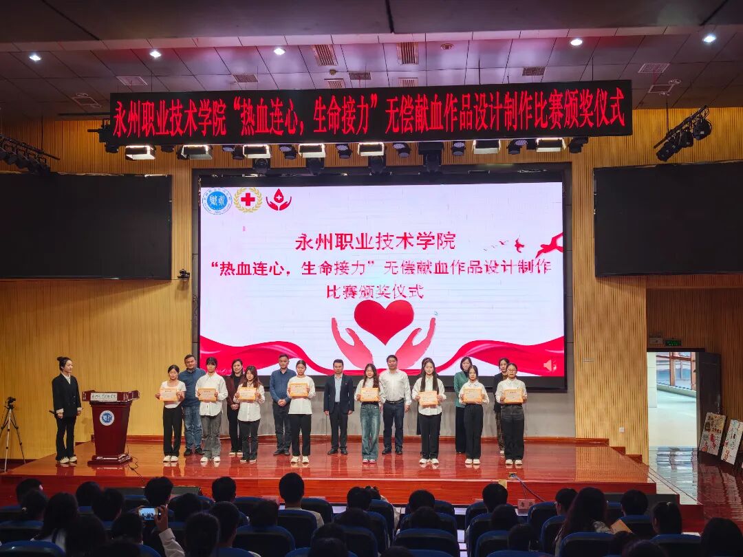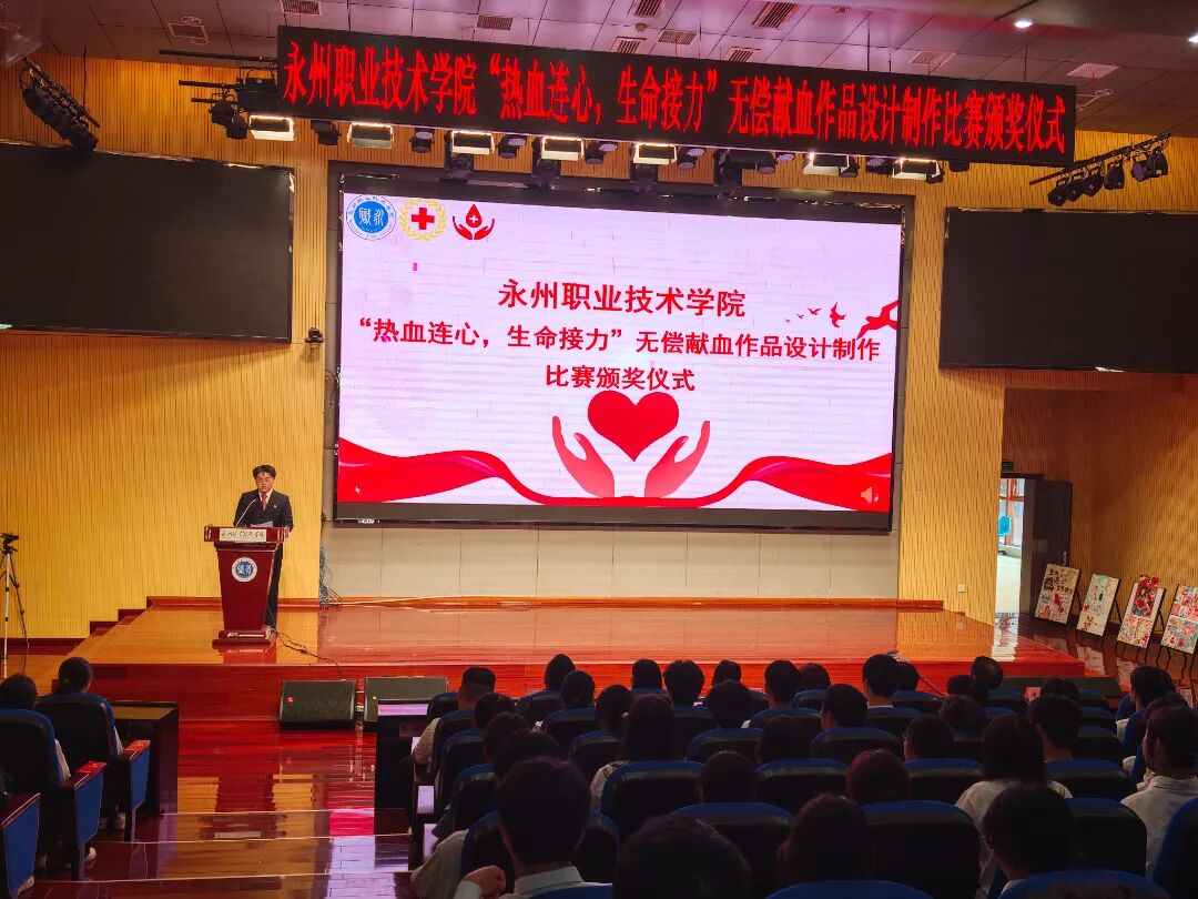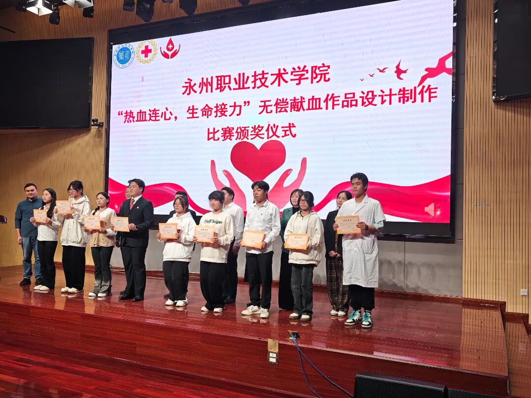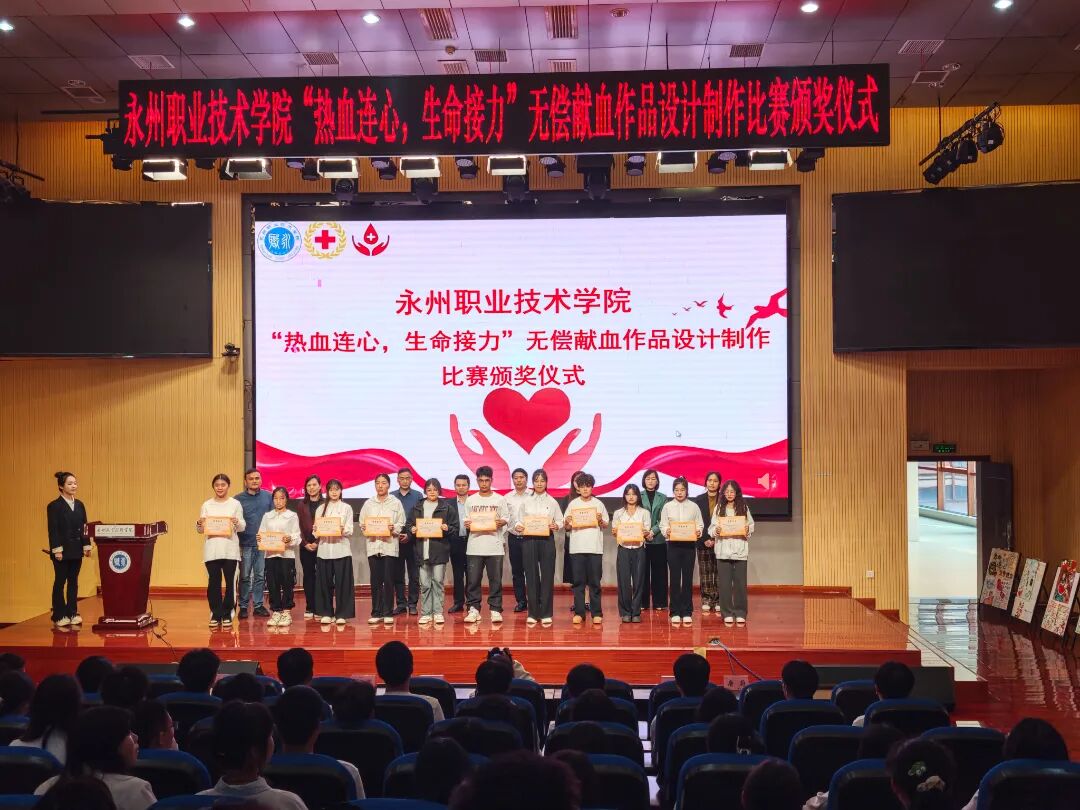 活动第一项,“热血连心,生命接力”为主题的无偿献血作品设计比赛颁奖仪式,此次比赛共收集300余件艺术作品,评选出一等奖12人、二等奖20人、三等奖28人及优胜奖32人,参会领导为获奖同学颁发荣誉证书。获奖代表唐俊杰同学说:“只要我们每个人都怀揣着一颗热血之心,积极参与到无偿献血中来,我们就能让更多的生命得到延续,让更多的家庭重获欢笑。让我们一起,让热血永远连心,让生命的接力永不停止”!