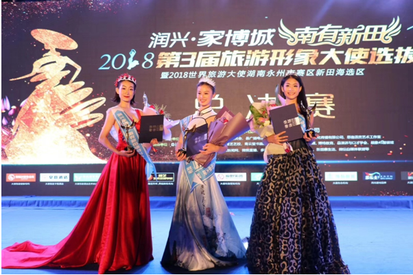 8月18日晚,2018南有新田第三届“旅游形象大使”选拔赛决赛在新田润兴家博城广场精彩上演。我院魅力永职模特大赛的冠军刘莎和亚军陈科雅通过层层选拔,经过激烈角逐,最终刘莎摘得桂冠,陈科雅获得季军。 本次比赛从海选、初赛、复赛到总决赛历时两个月,吸引200余名选手参赛,经过角逐,12位佳丽进入决赛,总决赛分为旗袍秀、才智解说、泳装秀个人才艺展示和晚礼服秀五个环节进行。 T台上,刘莎和陈科雅两位同学尽情施展,充分展现出永职学子朝气蓬勃、积极向上的精神面貌和青春风采,赢得评委和现场观众的一致好评。最终刘莎摘得2018“润兴家博城”南有新田第三届“旅游形象大使”桂冠,陈科雅获得季军头衔。