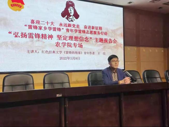 1963年3月5日,毛泽东主席“向雷锋同志学习”的亲笔题词在《人民日报》发表,此后每年的3月5日被定为学习雷锋纪念日,三月份为学雷锋活动月。为进一步弘扬雷锋精神,特别是向青少年朋友们讲全、讲好、讲活雷锋的故事,让雷锋精神具有更深远的意义,我校青年教师王亮以青年作家和《雷锋的故事》一书作者的身份积极开展以“弘扬雷锋精神 坚定理想信念”为主题的宣讲活动,以实际行动在潇湘大地上广泛传播雷锋精神。