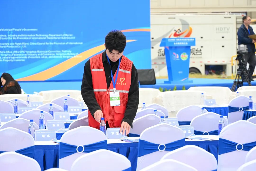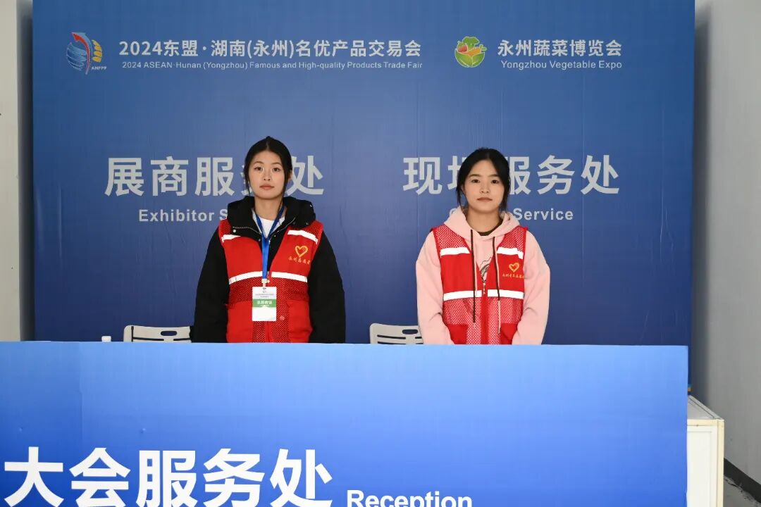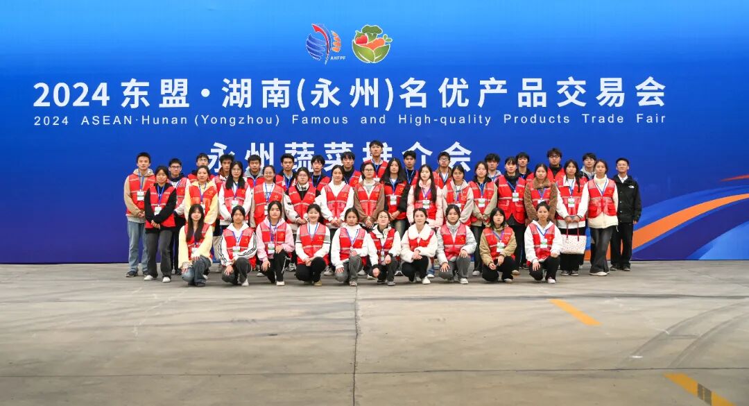 2024 东盟·湖南(永州)名优产品交易会永州蔬菜推介会在首衡城国际农产品交易中心开幕,展会现场热闹非凡。此次盛会汇聚了东盟各国丰富多样的名优产品,吸引着全球目光,而我校志愿者积极投身其中,成为会场上一道独特且充满活力的风景线。