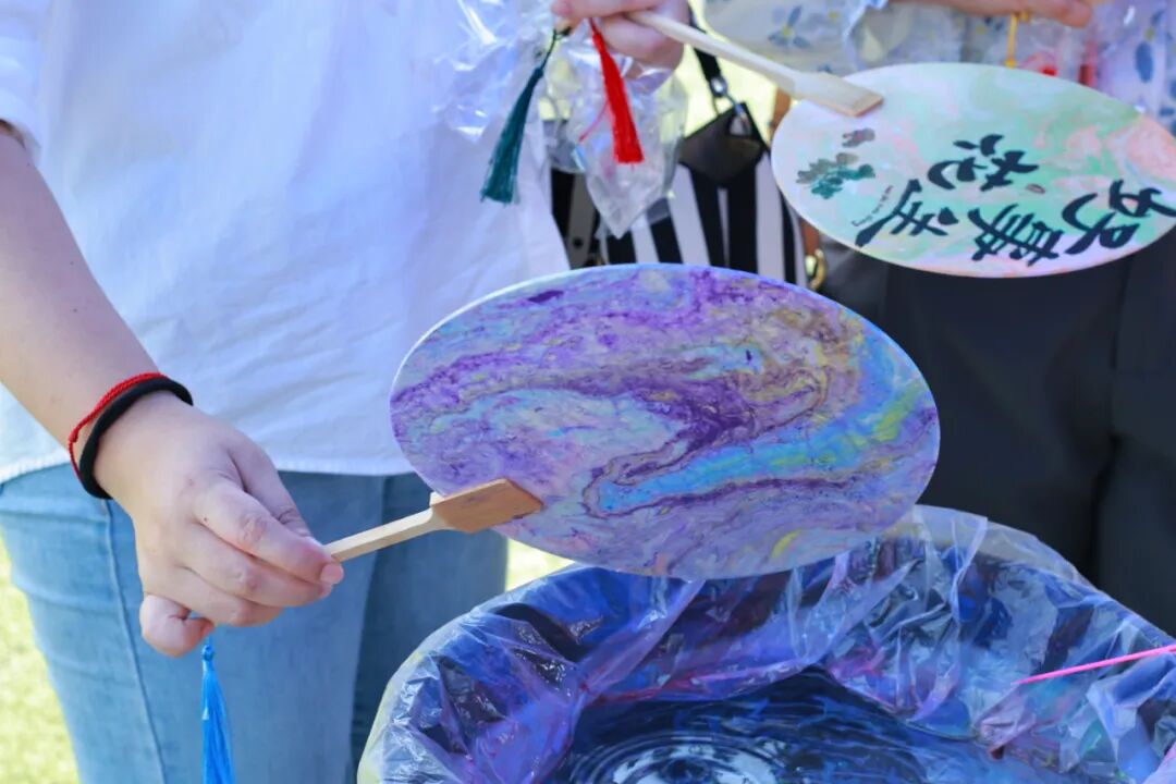 现场共分为主题活动区和互动体验区,主题活动区又分为个人积分区和团队积分区,通过参与活动获得相应的积分,最后可以到积分兑换区兑换相应的奖品,互动体验区设置有情绪涂鸦墙、撕掉不定义、心灵加油站和写给未来自己的一封信四个活动,大家还可以在活动中体验漆扇和扎染,感受心灵与艺术的碰撞。