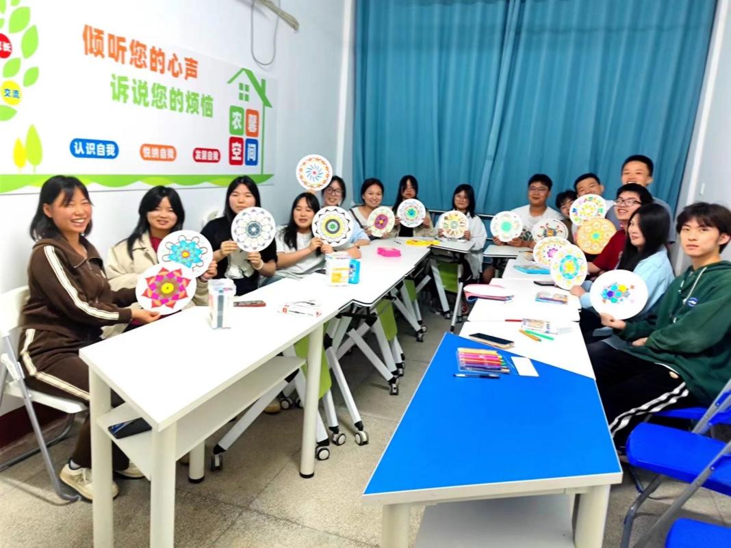 第二期“情绪曼陀罗”中,开场活动“可怜的小猫”引起了同学们一阵阵欢声笑语,接着,大家又在核心活动“情绪曼陀罗”对曼陀罗模板进行了涂色并分享自己的心情感悟,同学们纷纷表示,通过本次涂色活动,自己焦虑、压抑的情绪得到了释放,感觉轻松而愉悦。