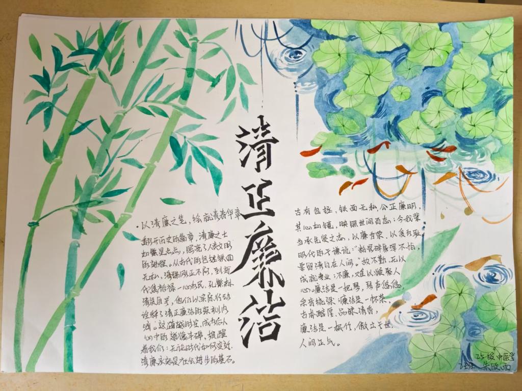 近日,医学院廉洁主题手抄报大赛圆满落幕。本次活动紧扣医学生职业素养培育核心,创新以手抄报这一鲜活形式推动廉洁文化浸润校园,不仅点燃25级全体同学的参与热情,更收获24级学子的积极响应。学子们用笔墨勾勒廉洁图景,用创意传递清风力量,展现了新时代医学生的责任与担当。