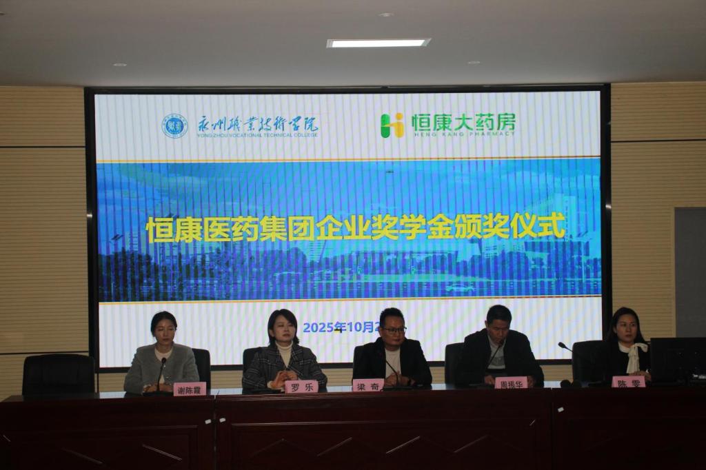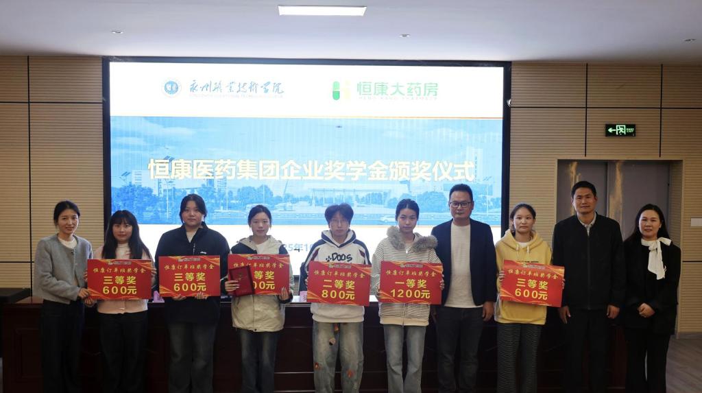 恒康医药集团董事长助理梁奇介绍,集团作为新三板挂牌企业(证券代码 871992),旗下子公司为全国医药零售百强,此次设立奖学金不仅是对优秀学生的肯定,更希望通过“企业导师进课堂、学生见习、实习进企业”,让课程对接岗位需求,助力学生成长为“懂技术、善实践”的高级医药人才。