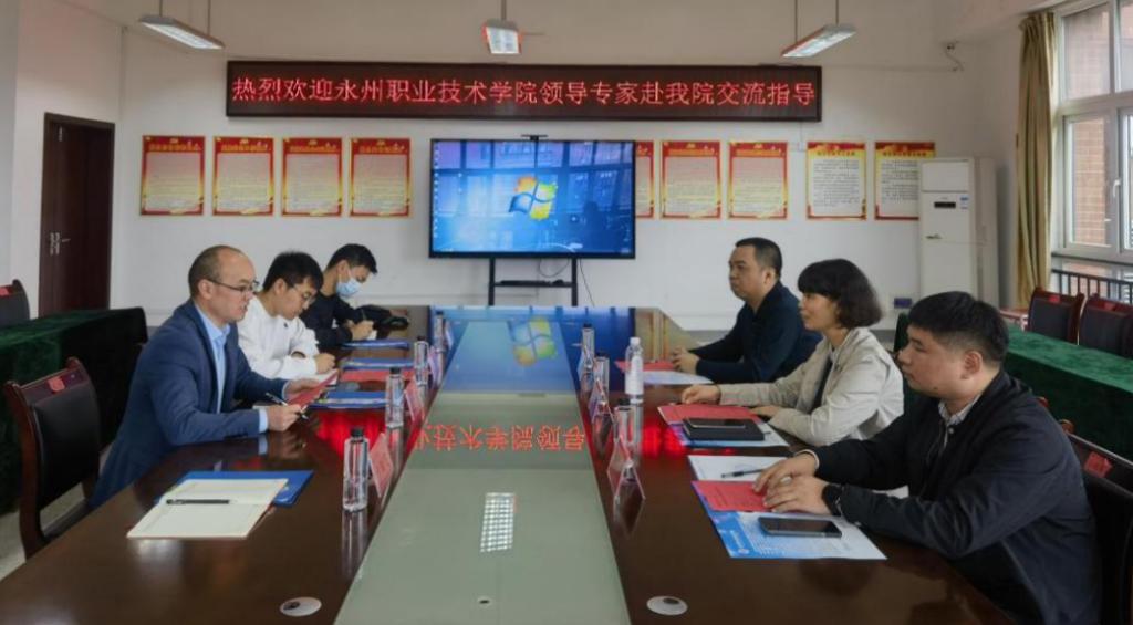 在安顺职业技术学院,应用医药系陈懿主任对系部与贵州百灵共建百灵康养产业学院、与贵州医科大学联合开展医学影像技术和药学专业全日制“专升本”联合培养、举办学生技能大赛,成立博士后科研工作站等方面进行了经验介绍。双方对师资队伍培育、专升本联合培养、校企深度合作、课程资源应用与推广,拓宽就业渠道等方面进行了深入交流。